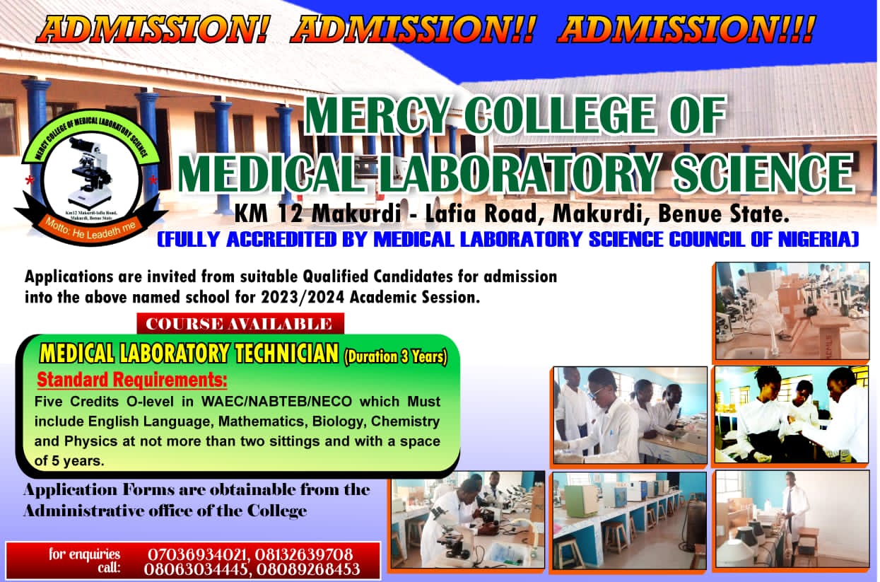 LecturerI want to take this opportunity to thank the founder of Mercy College of medical laboratory science Makurdi in person of Mr and Mrs Anthony Sewuese Sende for establishing such a wonderful institution. Mercy College of medical laboratory science is an approved school by the regulatory body Association of Medical laboratory science council of Nigeria (AMLSCN), Mercy College of medical laboratory science is capable and competent to train Medical laboratory technician (MLT) which I undergo a three years intensive training and passed medical laboratory science council examination. Therefore, I urged the younger ones to join the school to receive a training to become MLT so that they shall become useful in the society.